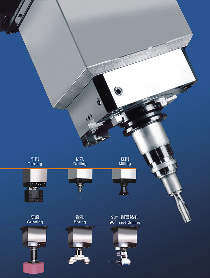 ■ 工作臺配有CF軸高精度分度結(jié)構(gòu),配合自定心液壓制動單元,成為機床高性能復(fù)合功能的。